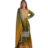Chinon Silk Sequence With Rivet Moti Work Straight Kurta With Sharara and Dupatta Set For Women -Green (L)