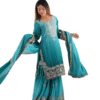 Chinon Silk Sequence With Rivet Moti Work Straight Kurta With Sharara and Dupatta Set For Women -Yellow (M)